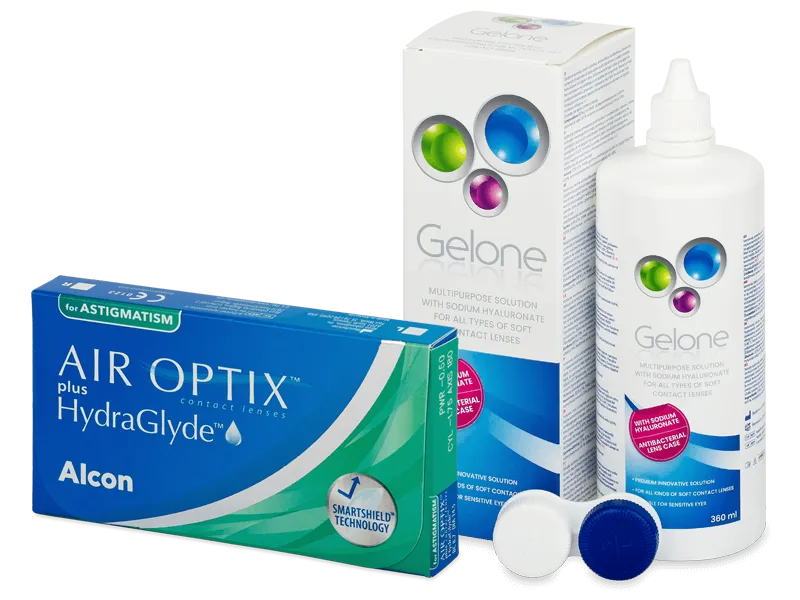 Air Optix plus HydraGlyde for Astigmatism (6 лещи) + разтвор Gelone 360 ml