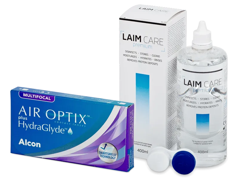 Air Optix plus HydraGlyde Multifocal (6 лещи) + разтвор Laim Care 400 ml